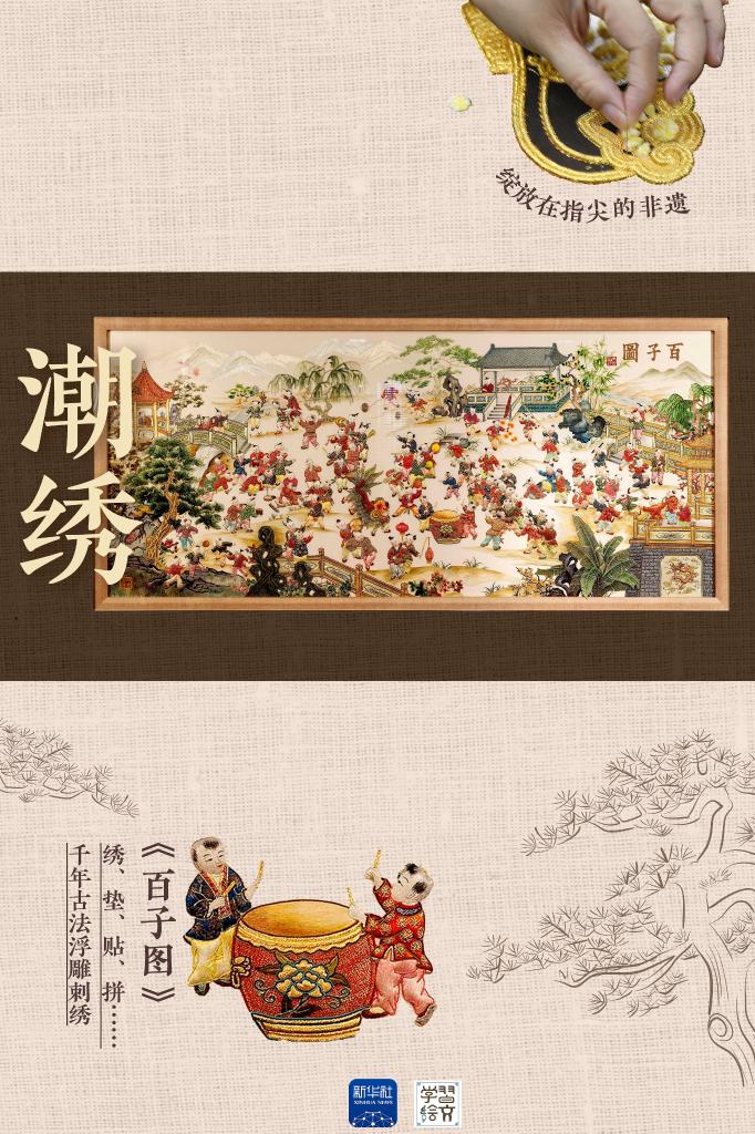 潮繡,屬我國四大名繡中的粵繡門派,最大的特點是立體墊高,以繡藝精美細(xì)致、構(gòu)圖均衡飽滿著稱,色彩亮麗又具立體感。