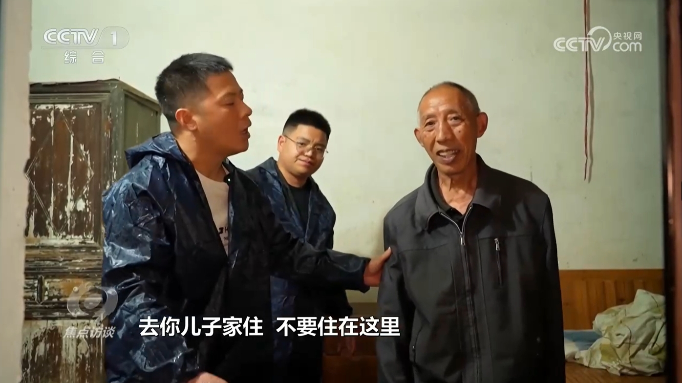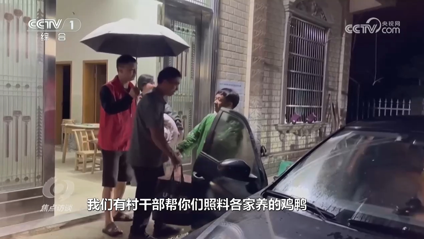 在鎮(zhèn)村干部的耐心勸說(shuō)下,這位村民答應(yīng)和妻子一起去孩子家里住。老人看不清夜路,鎮(zhèn)村干部就分工合作,一人背、一人扶,并安排了車子進(jìn)行護(hù)送。