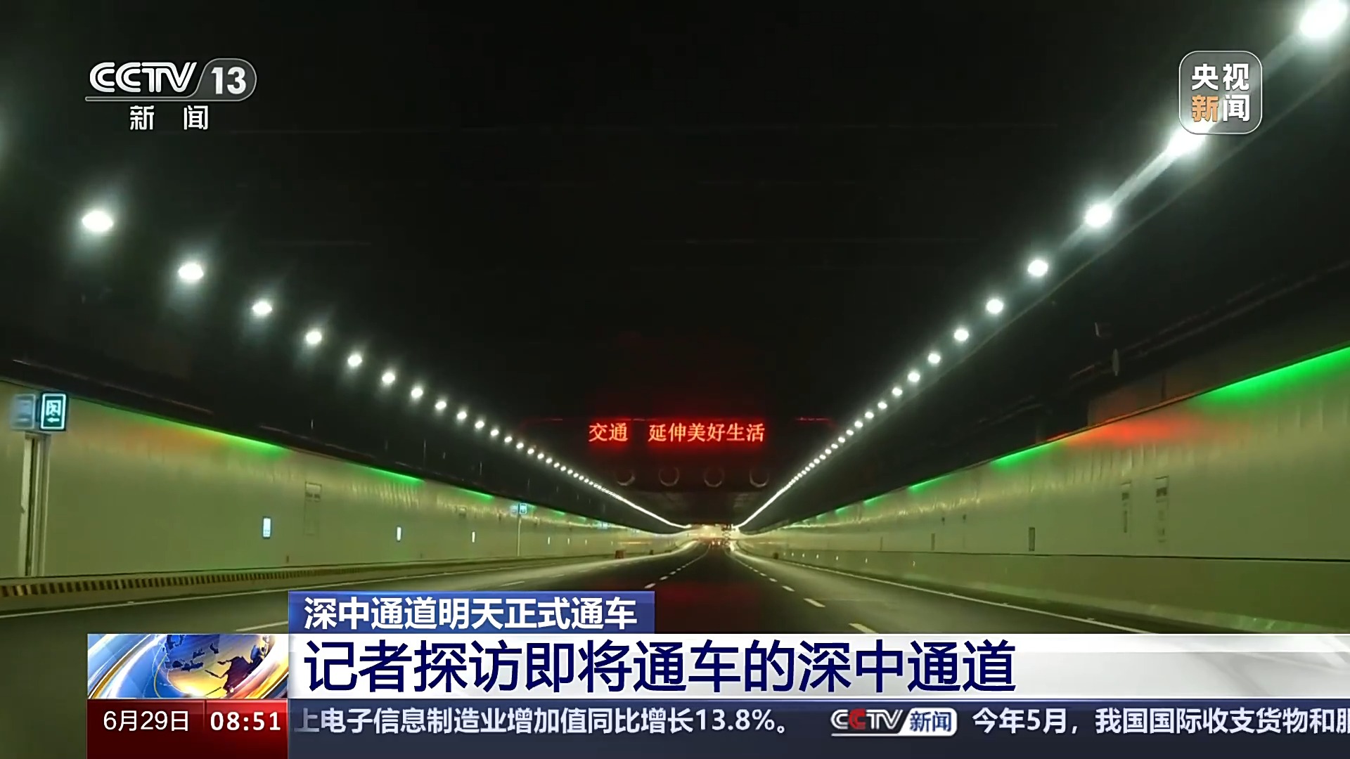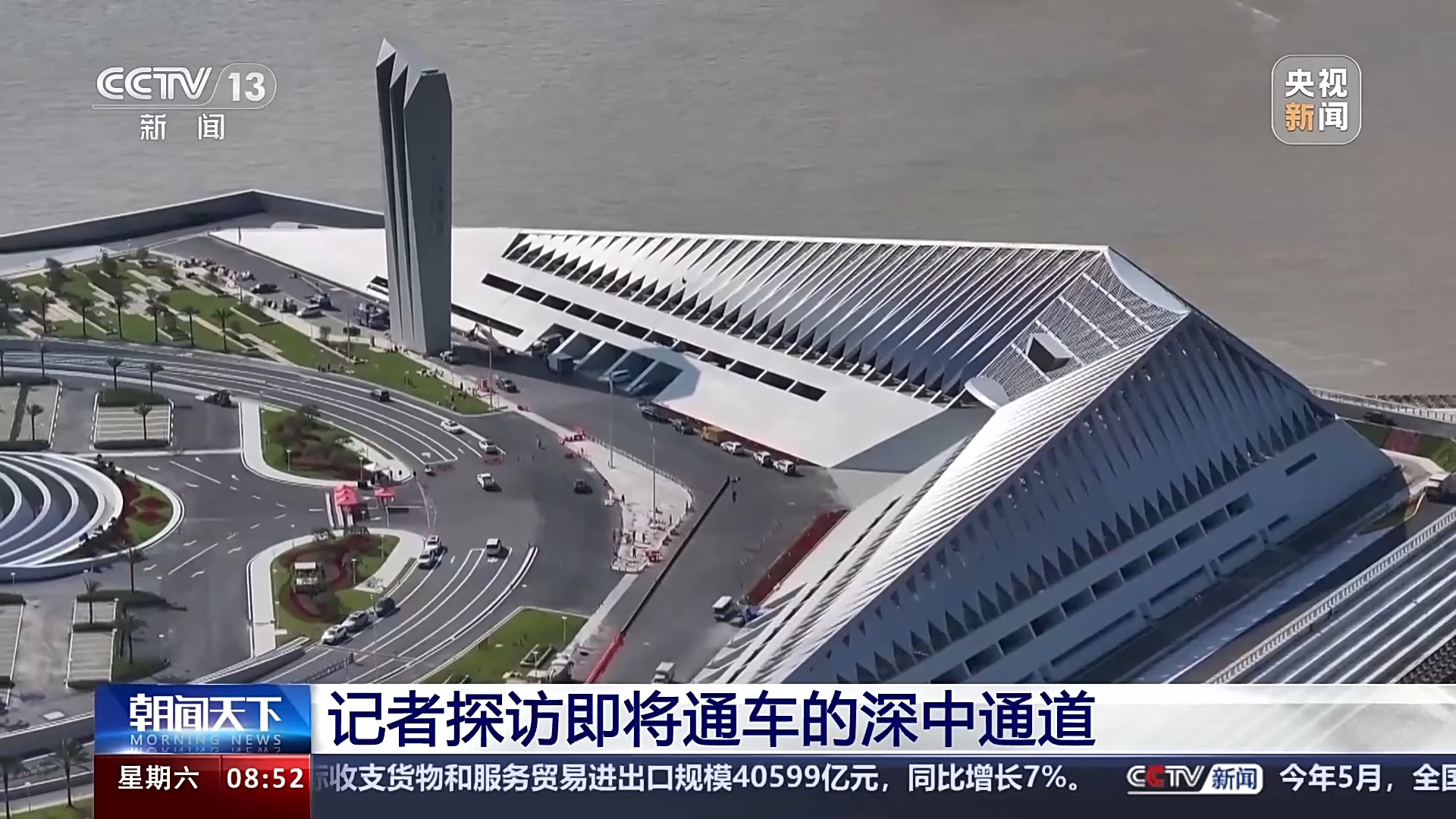 總臺記者 王思元:深中通道全長24公里,我們行駛了大概18分鐘,就已經(jīng)通過海底隧道進(jìn)入了深圳。這里是重要的互聯(lián)互通的交通樞紐,我身后就是廣深沿江高速,通過我的另一側(cè),大家可以看到,從這里行駛5公里左右,就可以到達(dá)機荷高速和廣深高速了,從這個位置到達(dá)深圳寶安國際機場有2公里的距離。