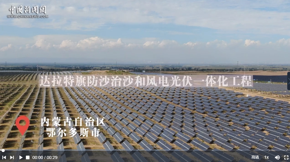 6月28日,“鑄牢共同體 中華一家親”主題宣傳活動采訪團來到內(nèi)蒙古自治區(qū)鄂爾多斯市達拉特旗防沙治沙和風電光伏一體化工程。工程主要布局在庫布其沙漠和南部干旱硬梁區(qū),庫布其沙漠工程規(guī)劃總長133公里、裝機規(guī)模2700萬千瓦的“光伏長城”。達拉特旗光伏發(fā)電應用領(lǐng)跑基地位于“光伏長城”中部,基地采取“光伏+生態(tài)治理+有機農(nóng)林+沙漠旅游”模式,種植紫穗槐、黃芩、黃芪等經(jīng)濟作物。