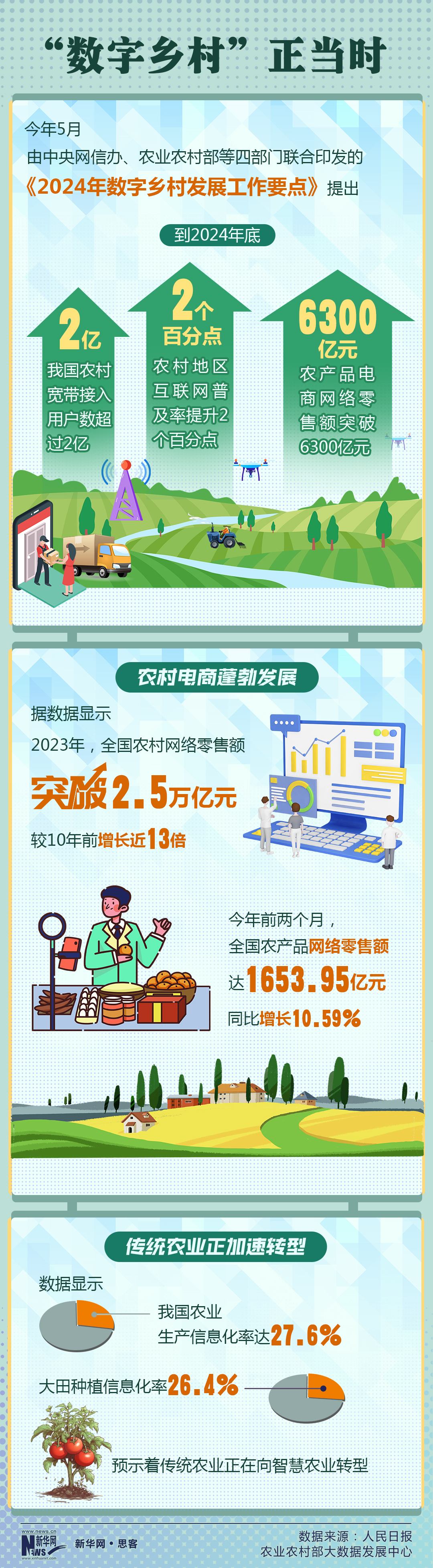 隨著網(wǎng)絡(luò)等基礎(chǔ)設(shè)施不斷向鄉(xiāng)村延伸,傳統(tǒng)農(nóng)業(yè)正加速向智慧農(nóng)業(yè)轉(zhuǎn)型。數(shù)據(jù)顯示,我國農(nóng)業(yè)生產(chǎn)信息化率已達(dá)27.6%,大田種植信息化率也達(dá)到了26.4%。這一轉(zhuǎn)變不僅提高了農(nóng)業(yè)生產(chǎn)效率,也提升了農(nóng)產(chǎn)品的質(zhì)量,為鄉(xiāng)村振興注入了新的活力。
