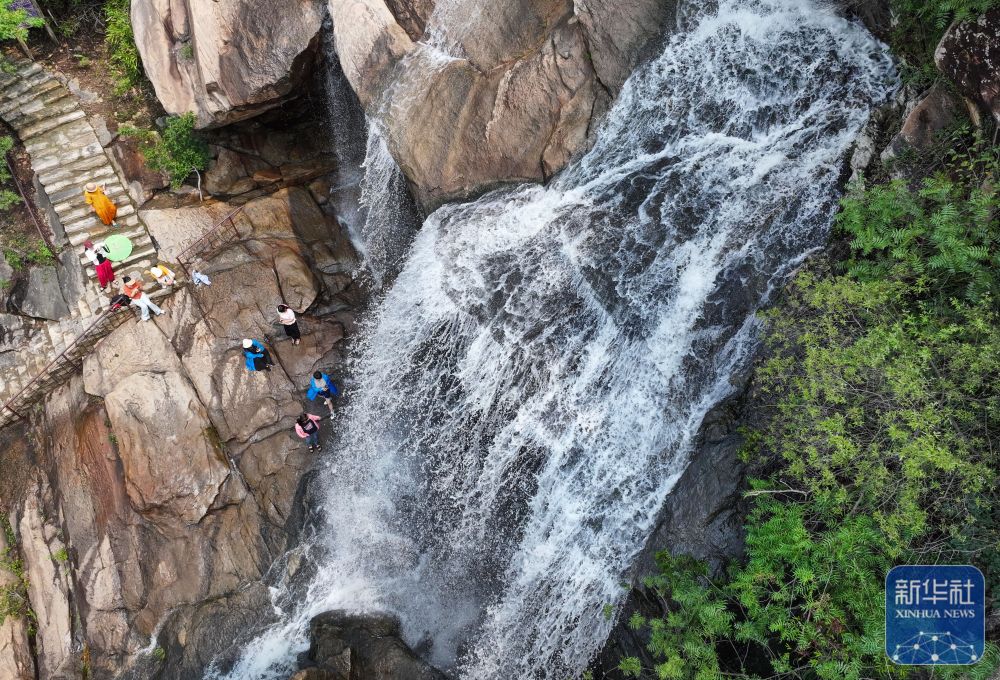 7月10日,游客在江蘇省連云港市連云區(qū)宿城街道東崖屋村游玩(無人機照片)。新華社發(fā)(王健民 攝)