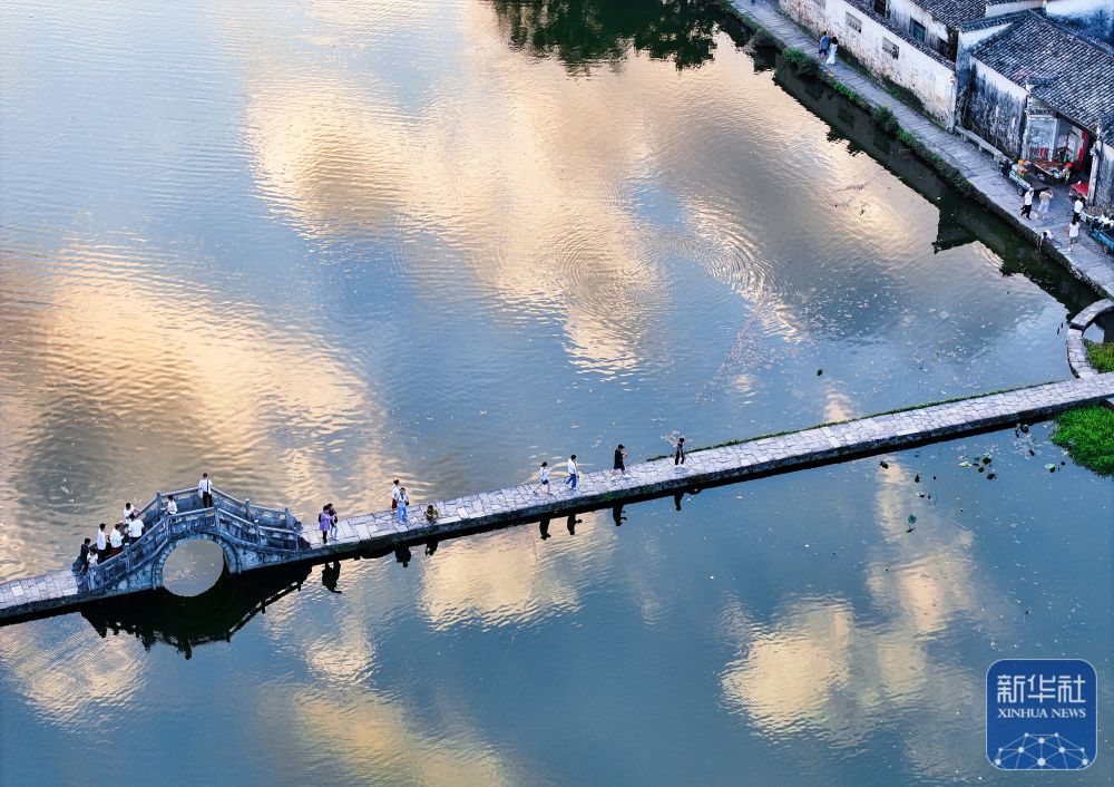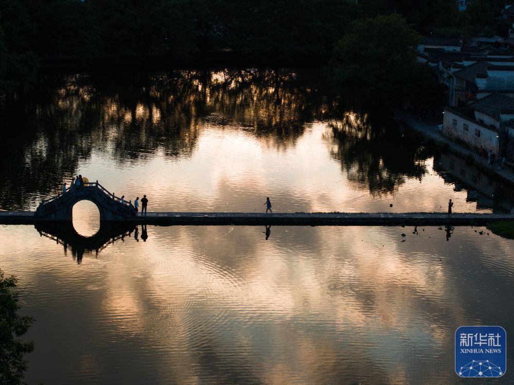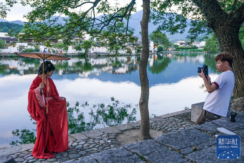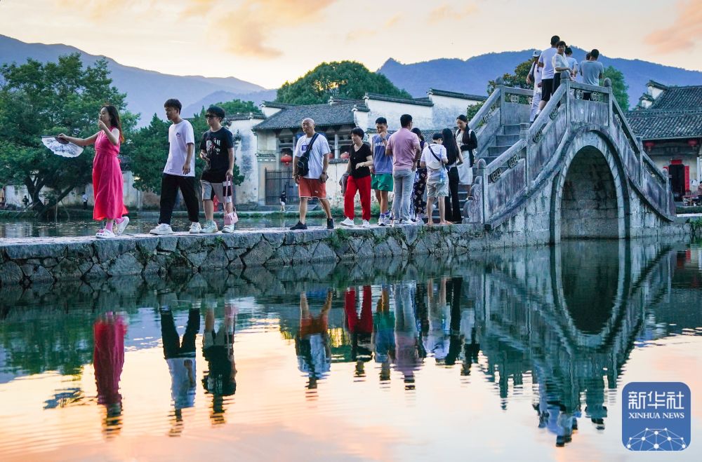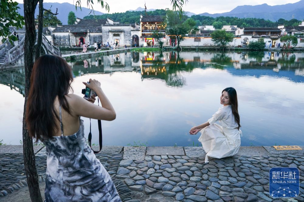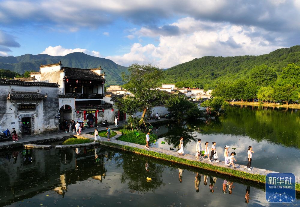 7月7日,游客在安徽省黃山市黟縣宏村游玩。新華社記者 杜宇 攝
