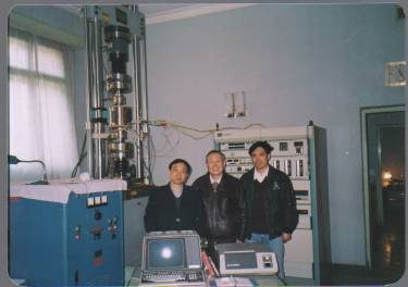 20世紀80年代在華東石油學(xué)院試驗室與研究生進行海洋鋼結(jié)構(gòu)疲勞試驗(中為方華燦)。新華社發(fā)