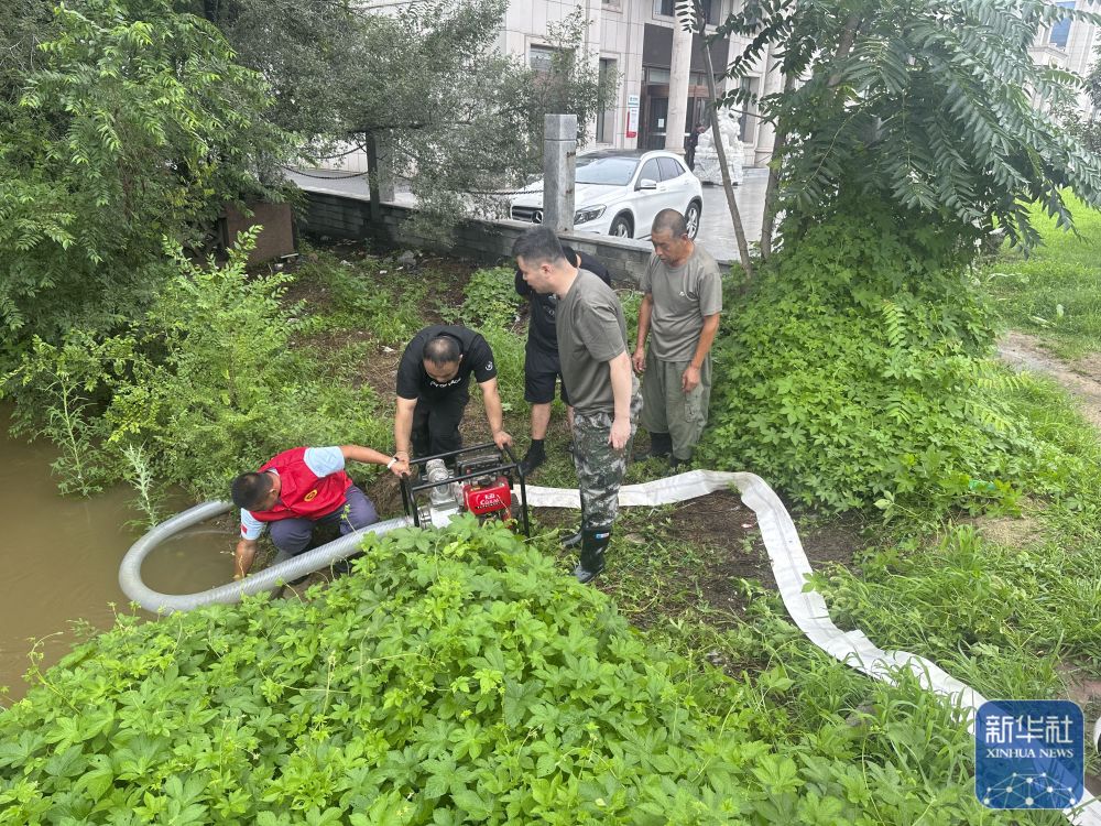 7月28日,鐵嶺市昌圖縣昌圖鎮(zhèn)八家子村組織黨員干部來到低洼耕地進(jìn)行排水,減少農(nóng)田內(nèi)澇?! ⌒氯A社發(fā)