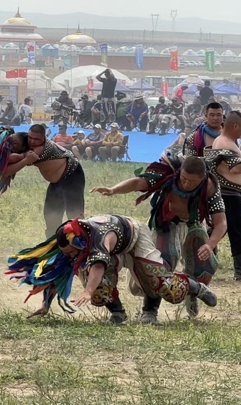 那達慕現(xiàn)場搏克手摔跤