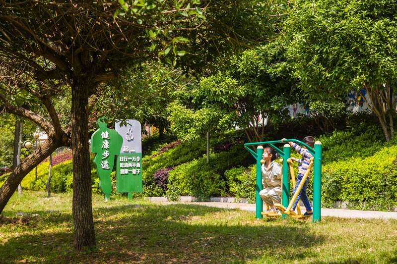 將樂縣??诖褰】抵黝}公園中,孩子們正在鍛煉身體。董觀生/攝