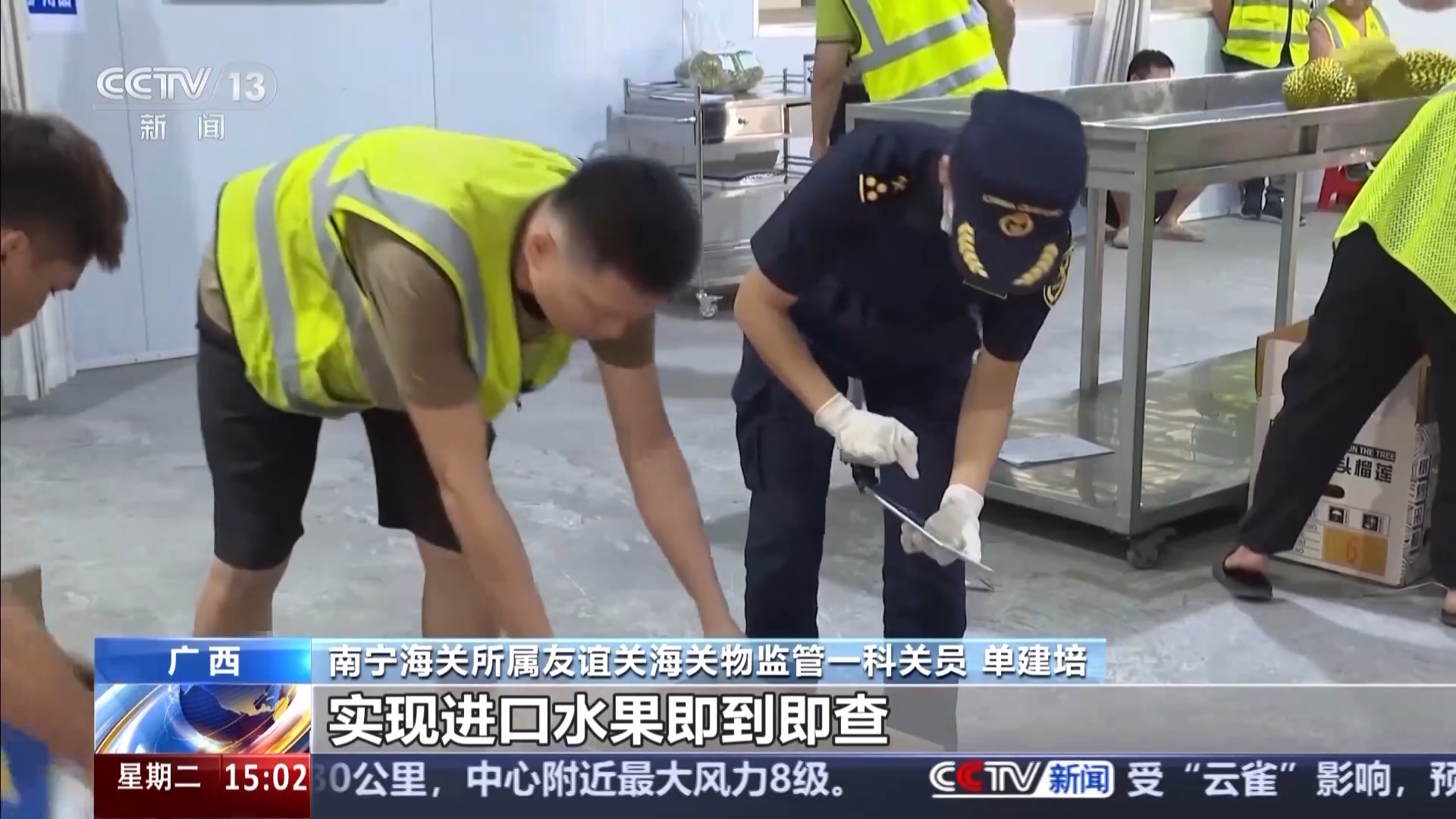南寧海關(guān)所屬友誼關(guān)海關(guān)物監(jiān)管一科關(guān)員 單建培:友誼關(guān)口岸是廣西最大的水果進(jìn)口口岸,系統(tǒng)能自動(dòng)識(shí)別查驗(yàn)車(chē)位空閑狀態(tài),自動(dòng)通知車(chē)輛進(jìn)場(chǎng)排隊(duì),壓縮貨物等待時(shí)間20%,查驗(yàn)車(chē)位周轉(zhuǎn)率提升35%,實(shí)現(xiàn)進(jìn)口水果即到即查。
