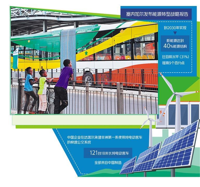 中塞新能源產(chǎn)業(yè)合作持續(xù)深化。中國企業(yè)在達(dá)喀爾承建了非洲第一條使用純電動客車的快速公交系統(tǒng)(BRT),121臺18米長純電動客車全部來自中國制造。由中國企業(yè)承建的20個車站和維保基地也都設(shè)置有中國制造的光伏系統(tǒng)。