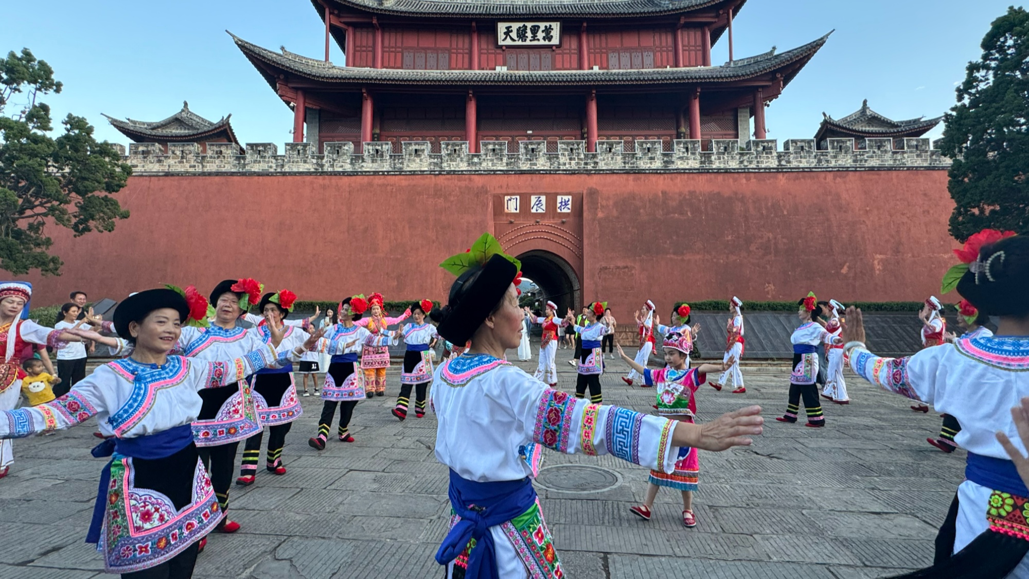 在巍山古城拱辰樓廣場(chǎng),經(jīng)常有“法治匯演”在這里上演。昨天,巍山的幾只民族文藝隊(duì)表演了《白族霸王鞭》舞蹈、《平安巍山》快板、《是你》聲樂、《阿克哩哈》舞蹈等節(jié)目,巧妙地將普法內(nèi)容融入到其中,以歌舞傳遞法治的力量,群眾載歌載舞,現(xiàn)場(chǎng)氛圍濃烈。