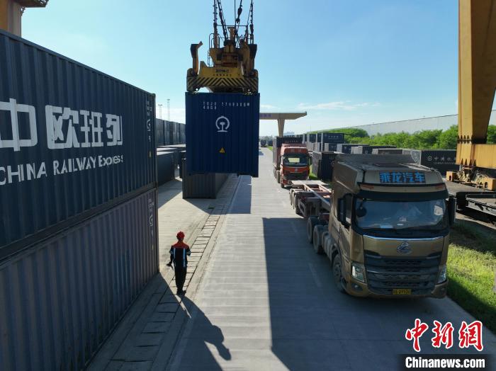 8月26日,廣西南寧國(guó)際鐵路港內(nèi),鐵路職工頂著下午的烈日,正在為發(fā)往越南的貨運(yùn)班列裝卸貨物。該鐵路港是廣西始發(fā)中越班列的核心場(chǎng)站。國(guó)鐵南寧局提供的信息顯示,今年前7個(gè)月,廣西始發(fā)中越班列累計(jì)發(fā)運(yùn)貨物6850標(biāo)箱,同比增長(zhǎng)16倍;其中7月份發(fā)運(yùn)1922標(biāo)箱,超過(guò)今年一季度發(fā)運(yùn)量總和,為今年以來(lái)第三次刷新單月發(fā)運(yùn)量紀(jì)錄。圖為集裝箱擺滿(mǎn)場(chǎng)站,等待裝車(chē)。王以照 攝