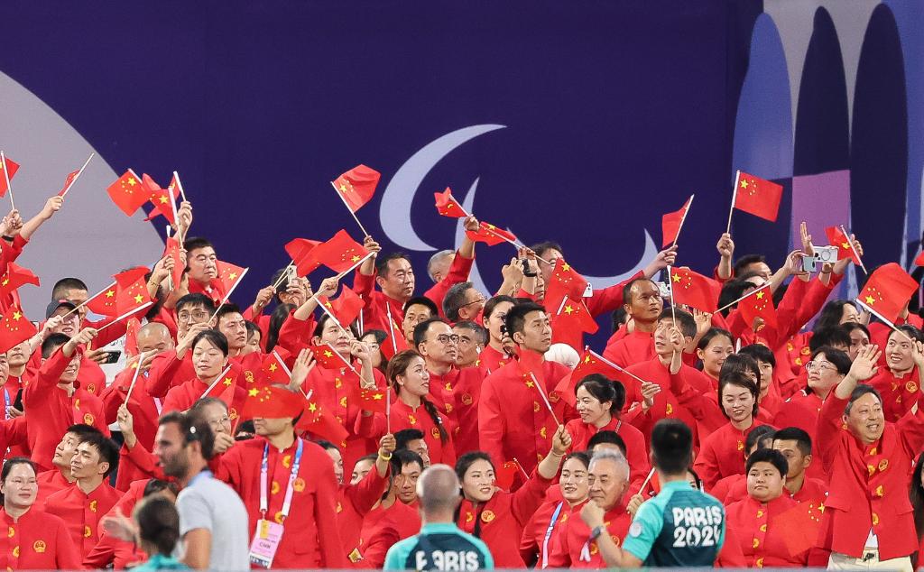 8月28日,中國體育代表團在巴黎殘奧會開幕式上入場。新華社記者 侯俊 攝