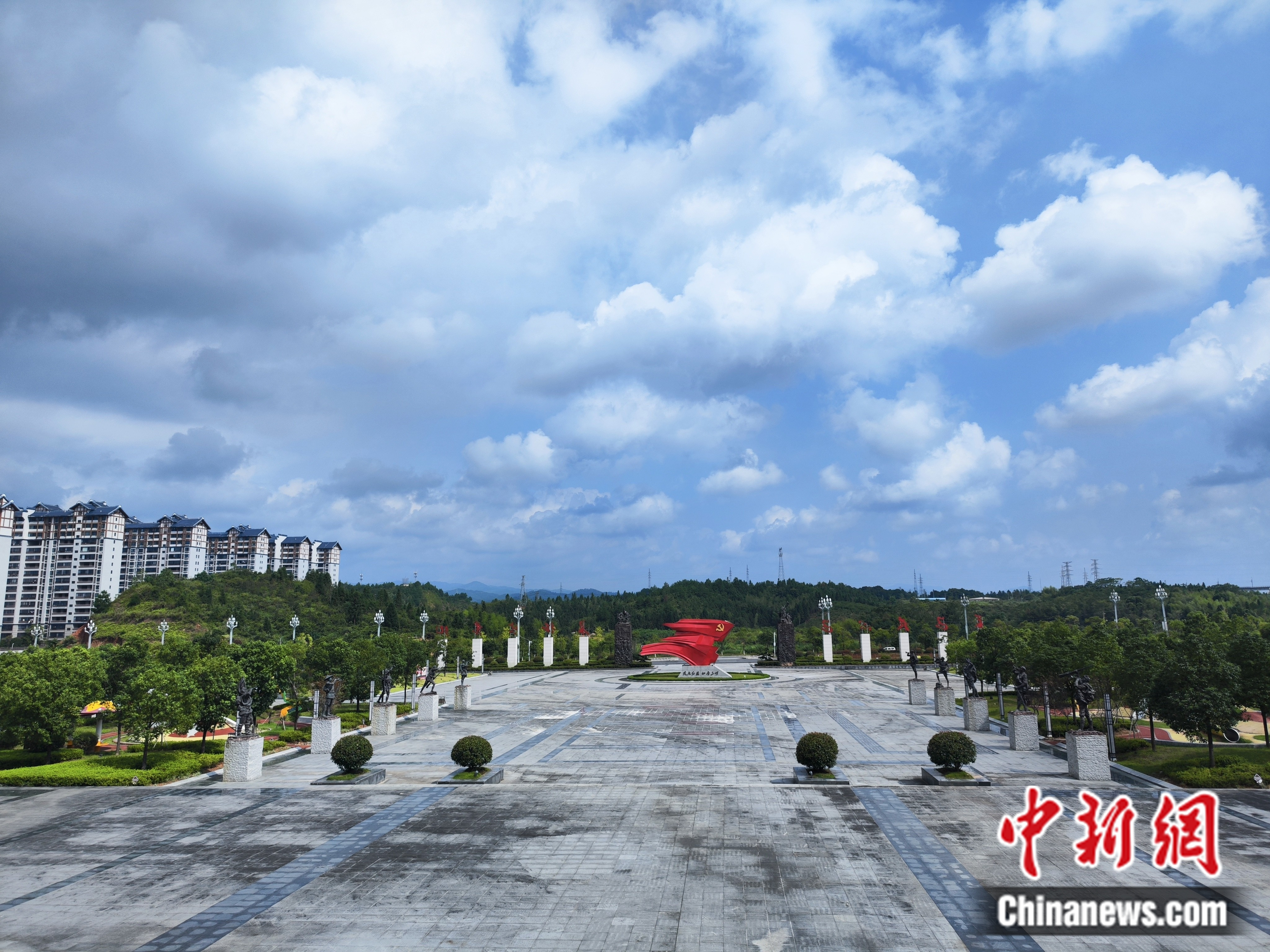 寧化縣長(zhǎng)征精神教育基地外,一則“紅旗”主題雕塑引人注目。劉越 攝