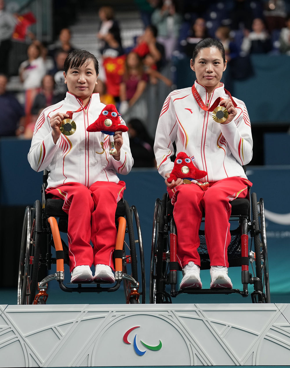 女雙14級決賽上,19歲的黃文娟搭檔16歲的金芋成,以3:1戰(zhàn)勝德國組合格雷貝/沃爾夫,贏得本屆殘奧會乒乓球首金。隨后的女雙5級決賽,36歲的劉靜搭檔34歲的薛娟,以3:1擊敗韓國組合徐秀妍/尹智裕,為中國隊再添一金。