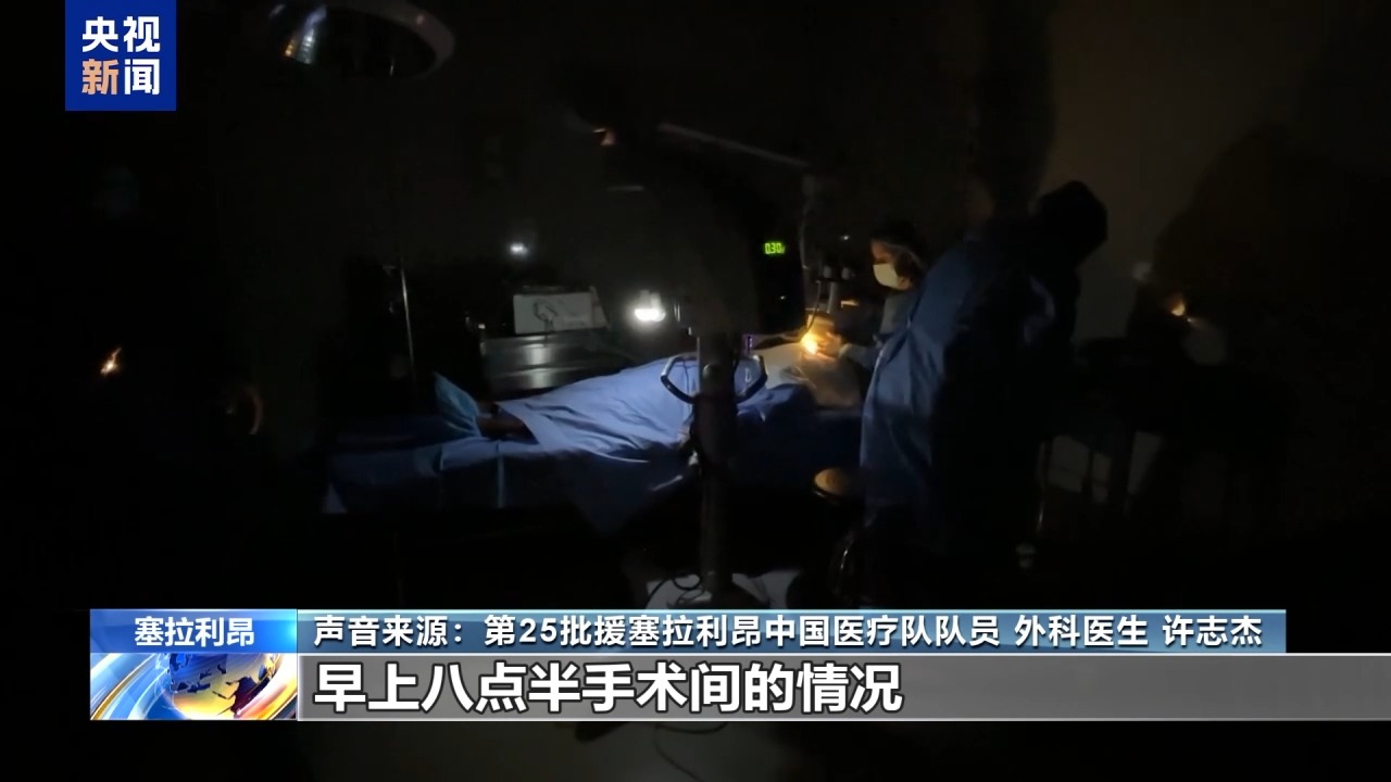 第25批援塞拉利昂中國醫(yī)療隊隊員 外科醫(yī)生 許志杰:做眼科手術(shù)第二臺,(患者)還沒打麻醉,突然停電了,大家就打著手機光,用著應(yīng)急電源在做手術(shù)。