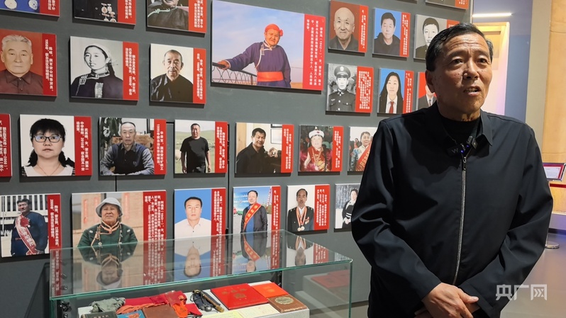 9月4日,淅淅瀝瀝的雨下個不停。下午三時許,孫保衛(wèi)來到四子王旗博物館展廳,在“人民楷模”都貴瑪展區(qū)駐足良久。他是都貴瑪額吉養(yǎng)育的28個“國家的孩子”中年齡最小的一個。
