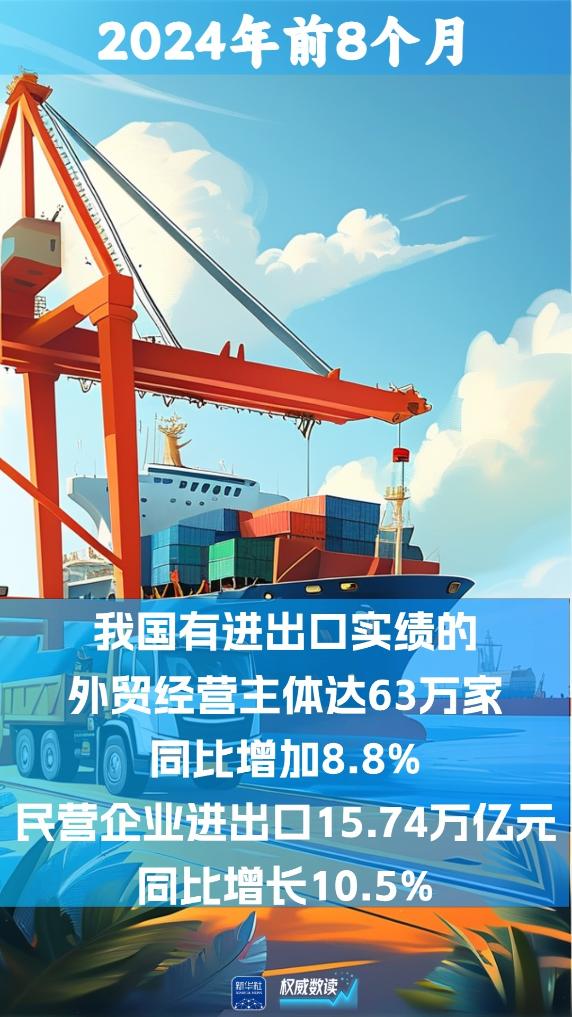 我國(guó)外貿(mào)經(jīng)營(yíng)主體持續(xù)活躍,前8個(gè)月有進(jìn)出口實(shí)績(jī)的外貿(mào)經(jīng)營(yíng)主體達(dá)63萬家,同比增加8.8%。其中,外貿(mào)主力軍民營(yíng)企業(yè)進(jìn)出口15.74萬億元。