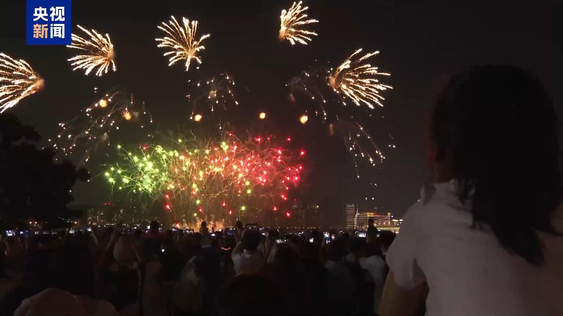 游客:今天(1日)看到這個煙花之后,就感覺到了我們盛世中華,真的是非常強大。煙花非常絢爛多彩,就像我們的祖國欣欣向榮。