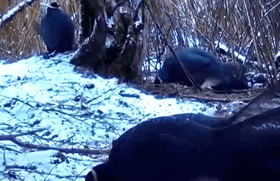 而大熊貓國家公園唐家河片區(qū)里,四川羚牛為了吃到可口的枝葉,小伙伴友誼的小船說翻就翻,遠處爆沖過來給小伙伴嚇個措手不及。這不,鮮嫩的枝葉就被全部占為己有了。