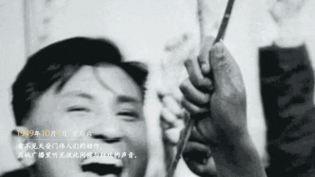 看不見天安門偉人們的動作,只從廣播里聽見彼此問候與狂歡的聲音。