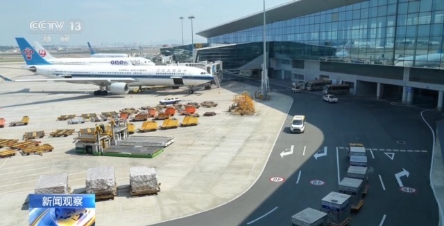 東莞港國際空運(yùn)有限公司副總經(jīng)理 蕭智亮:我們空港中心是全球首個直達(dá)機(jī)場空側(cè)的跨關(guān)境??章?lián)運(yùn)項目,貨物在空港中心完成裝車,送達(dá)我們的專用碼頭,通過海運(yùn)的方式到達(dá)香港國際機(jī)場飛往全球。