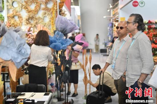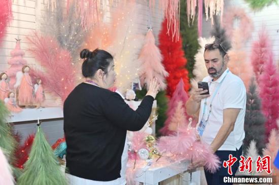 第136屆廣交會(huì)第二期的園林用品展區(qū)吸引采購(gòu)商(左)咨詢(xún)洽談。