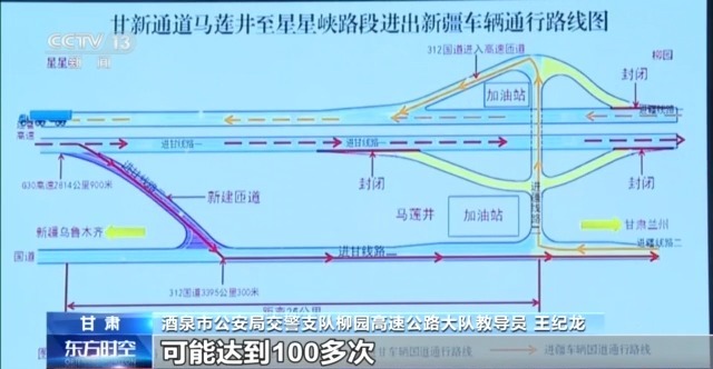 酒泉市公安局交警支隊柳園高速公路大隊教導員 王紀龍:我們每年這個路段的交通擁堵,可能達到100多次。