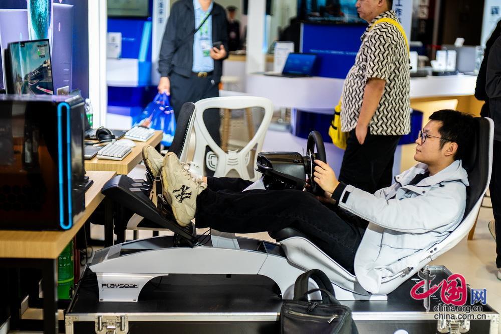 展區(qū)體驗(yàn)?zāi)M駕駛游戲。中國(guó)網(wǎng)記者