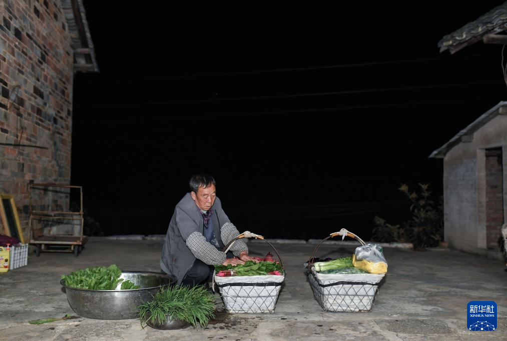 貴陽(yáng)市烏當(dāng)區(qū)水田鎮(zhèn)定扒村的菜農(nóng)在整理蔬菜,準(zhǔn)備乘坐252路“惠農(nóng)專(zhuān)線”公交車(chē)進(jìn)城賣(mài)菜(11月7日攝)。