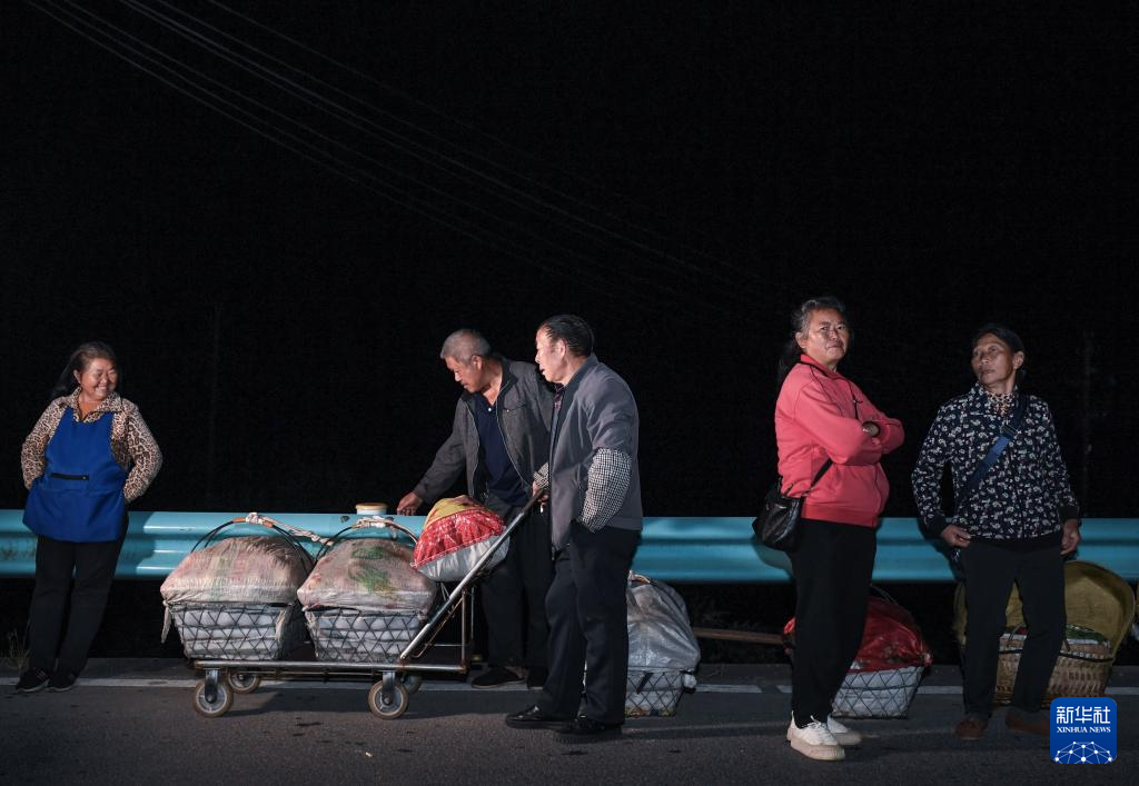 村民在貴陽(yáng)市烏當(dāng)區(qū)水田鎮(zhèn)定扒村候車(chē),準(zhǔn)備乘坐252路“惠農(nóng)專(zhuān)線”公交車(chē)進(jìn)城賣(mài)菜(11月7日攝)。