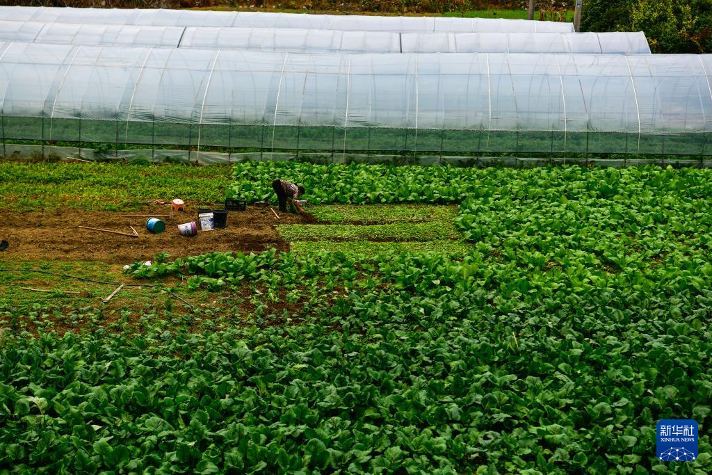 貴陽(yáng)市烏當(dāng)區(qū)下壩鎮(zhèn)下壩村的村民在地里勞作(11月6日攝)。
