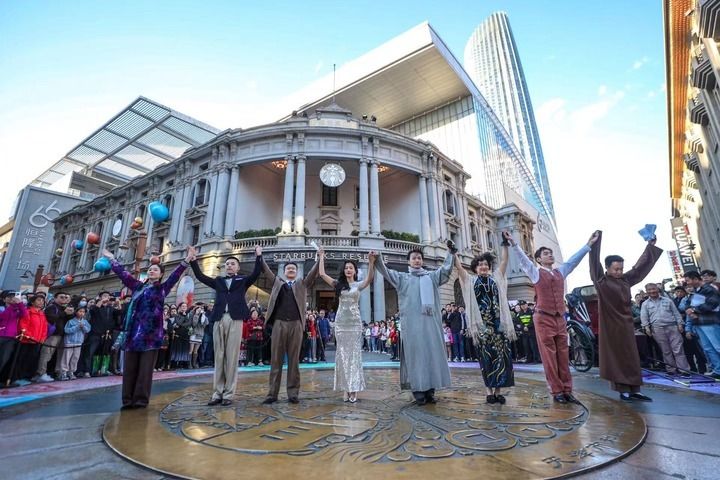 值得一提的是,主角佇立的露臺,原是建于20世紀(jì)20年代初的浙江興業(yè)銀行,現(xiàn)在是連鎖咖啡品牌星巴克在天津的首家旗艦店。步入其中,西洋古典與現(xiàn)代時(shí)尚交融的設(shè)計(jì)感撲面而來,如今這一“網(wǎng)紅”咖啡空間,吸引著不少市民游客前來打卡體驗(yàn)。