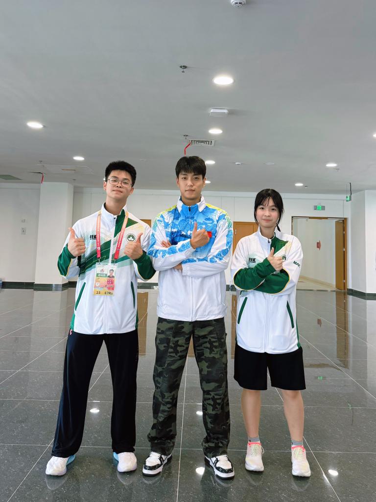 葉文喆自小愛看武俠片,在選修課上接觸民族武術后就潛心鉆研,經(jīng)常在網(wǎng)上看國內大型賽事直播,還是四川隊隊員付楨麗的“迷弟”。一場比賽后,他向付楨麗要簽名,并贈送了對方澳門特色徽章。