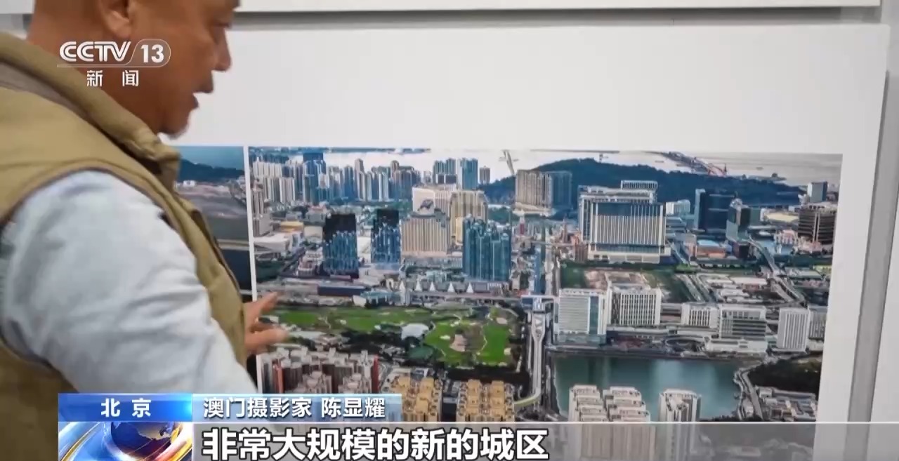 澳門攝影家 陳顯耀:回歸之后,隨著我們澳門的發(fā)展,也是帶動周邊區(qū)域一起發(fā)展繁榮。我們畫面看到的是橫琴,上面的照片是2012年的時候,橫琴都是山體,在準備開發(fā)了。下面是成立的橫琴粵澳深度合作區(qū),整個橫琴的建設也為我們澳門的發(fā)展建設提供了一個很重要的支撐、保障。