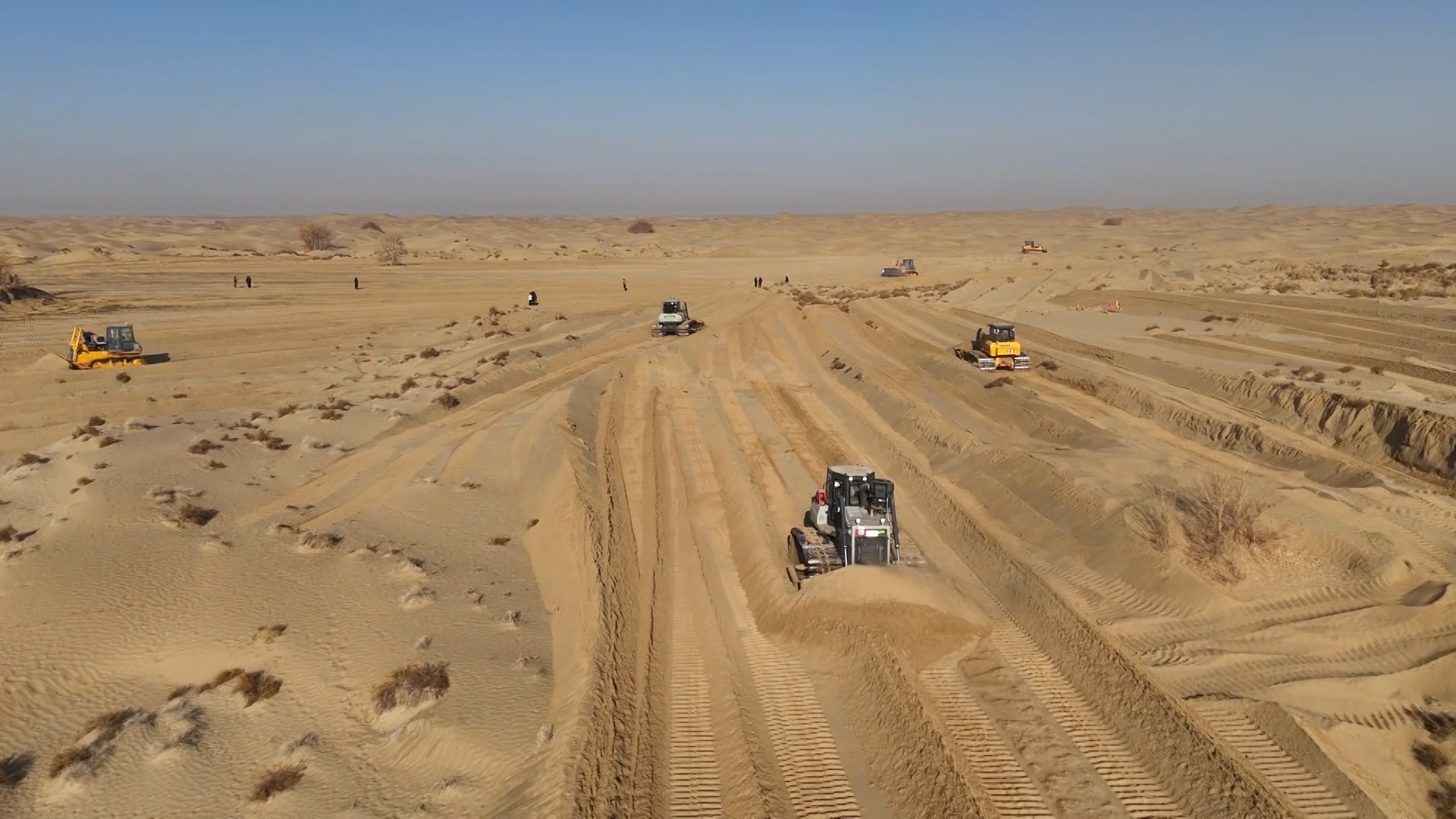 沙地平整,通過生物治沙改變當?shù)厣鷳B(tài)環(huán)境 (墨玉縣融媒體中心供圖)
