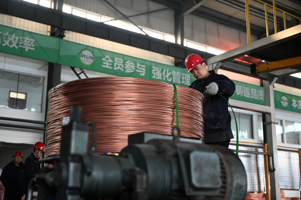 工人在天津新能再生資源有限公司銅桿車間工作。新華社記者 趙子碩 攝