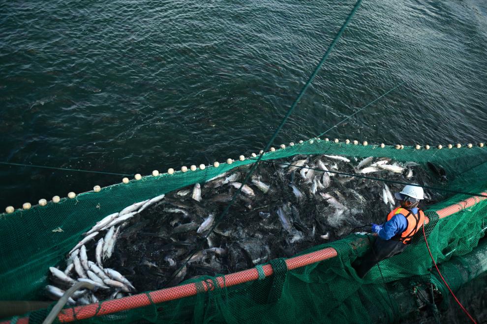 由于冷水魚對水質要求高,公司還自主研發(fā)糞便收集器、水下清污器等環(huán)保設備。“保持水質就保證了魚肉品質。”龍洋知鮮技術部部長馬小軍說。