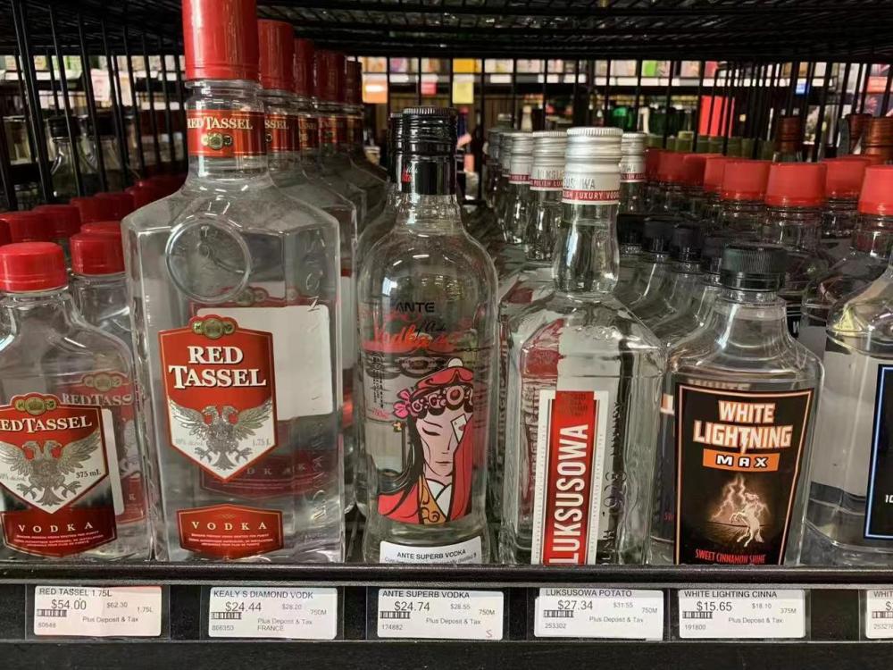 加拿大超市貨架上的中國(guó)產(chǎn)國(guó)粹臉譜系列伏特加。受訪者供圖
