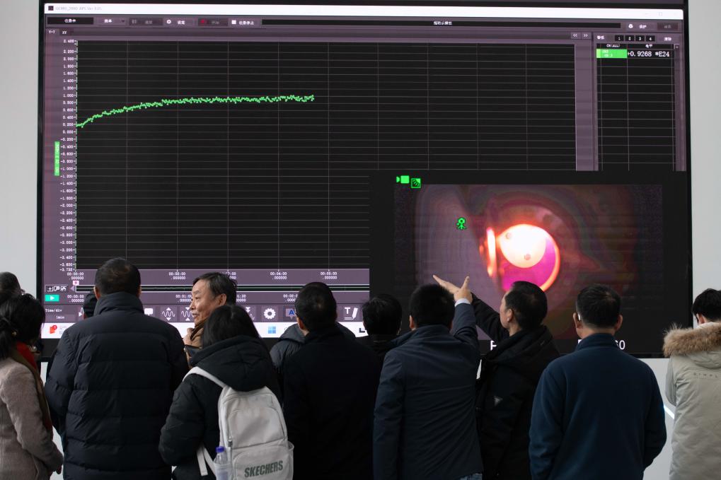 2025年1月14日,科研人員在巡看強(qiáng)流直線等離子體裝置“赤霄”的運行狀態(tài)。新華社記者 張端 攝