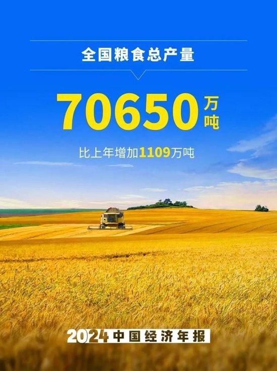 2、全國糧食總產量70650萬噸,比上年增加1109萬噸。