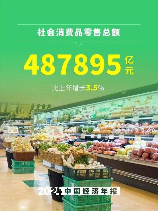5、社會消費品零售總額487895億元,比上年增長3.5%。