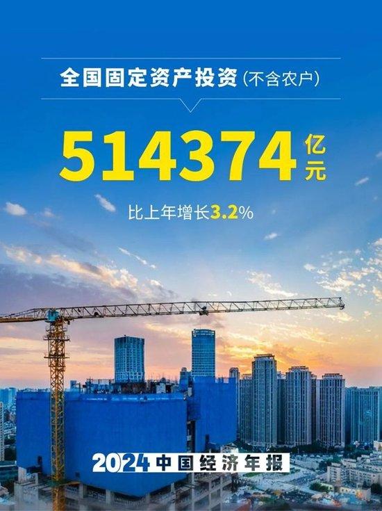 6、全國固定資產投資(不含農戶)514374億元,比上年增長3.2%。