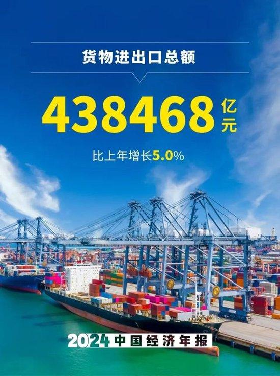 7、貨物進出口總額438468億元,比上年增長5.0%。