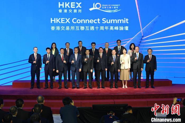 2024年11月18日,“香港交易所互聯(lián)互通十周年高峰論壇”在香港金融大會堂舉行。圖為嘉賓出席祝酒儀式。 中新社記者 李志華 攝