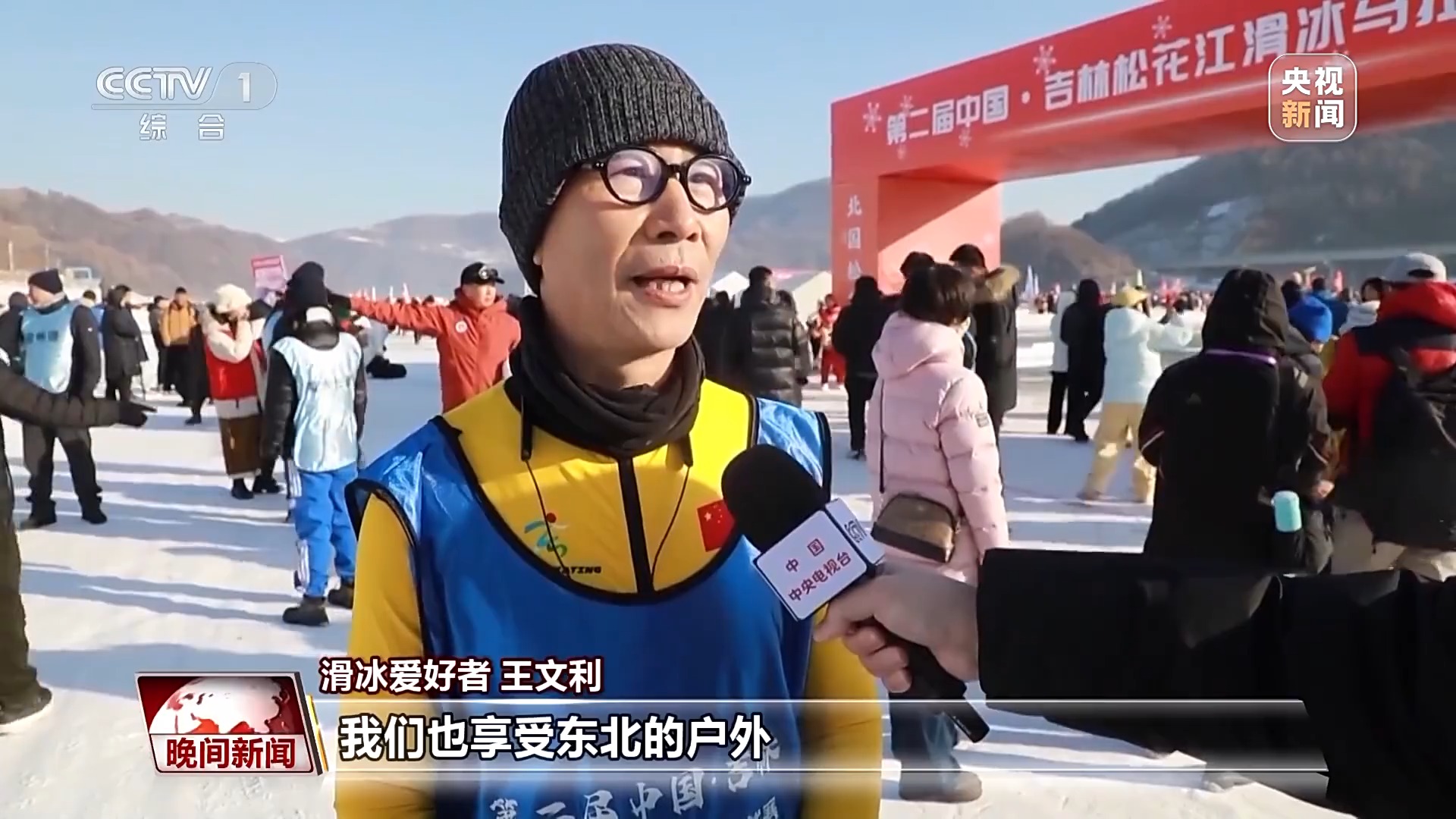 滑冰愛好者 王文利:我們也享受東北的戶外,因為不到戶外滑冰,就跟沒感受到過冬一樣。