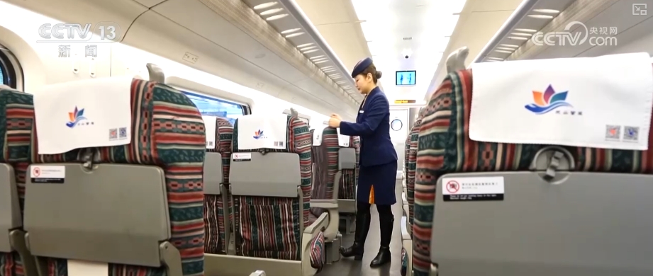 國鐵烏魯木齊局烏魯木齊客運段C845次列車員阿依江介紹,動車座椅上的這個犄角叫“羊角把”,是旋轉座椅的“小把手”。當動車組列車抵達終點站,再返程時列車運行方向變了。為了讓旅客面向列車前進的方向,這樣視覺更加舒適,他們會在終點站把座椅旋轉180度。像這樣腳踩座椅下方的旋轉腳踏,再用手抓住“羊角把”,輕輕一拉就能調轉座椅方向。