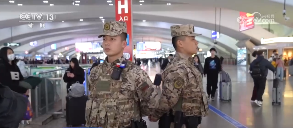 央視網(wǎng)消息:春運(yùn)期間,全國(guó)各地旅客出行顯著增加,擔(dān)負(fù)執(zhí)勤任務(wù)的武警部隊(duì)官兵堅(jiān)守執(zhí)勤一線,科學(xué)進(jìn)行人員編組,在機(jī)場(chǎng)、高鐵等人流聚集處加強(qiáng)警戒、疏導(dǎo)巡邏,為旅客安全出行保駕護(hù)航。