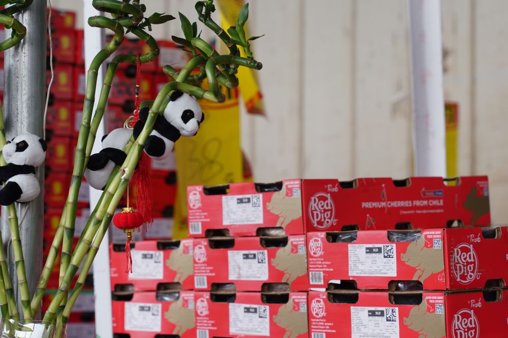 來(lái)自齊齊哈爾的祝先生,選購(gòu)了榴蓮、釋迦果帶回東北老家。他說:“有些水果我沒吃過,甚至沒聽說過,過年了就要吃點(diǎn)兒‘新鮮的’?!?/p>