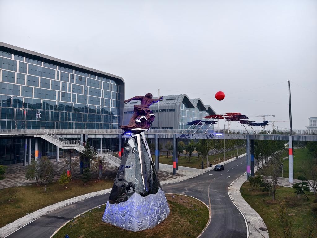 園區(qū)內(nèi)的“夸父”雕塑。新華社記者 陳諾 攝