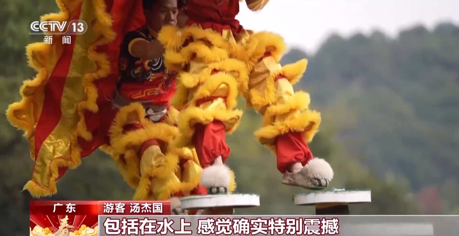 游客 湯杰國:我的家鄉(xiāng)在河西走廊甘肅張掖?,F(xiàn)場看獅子這種閃轉(zhuǎn)騰挪,包括在水上,感覺確實(shí)特別震撼,我覺得這就是中華民族精神的傳承,特別厲害。